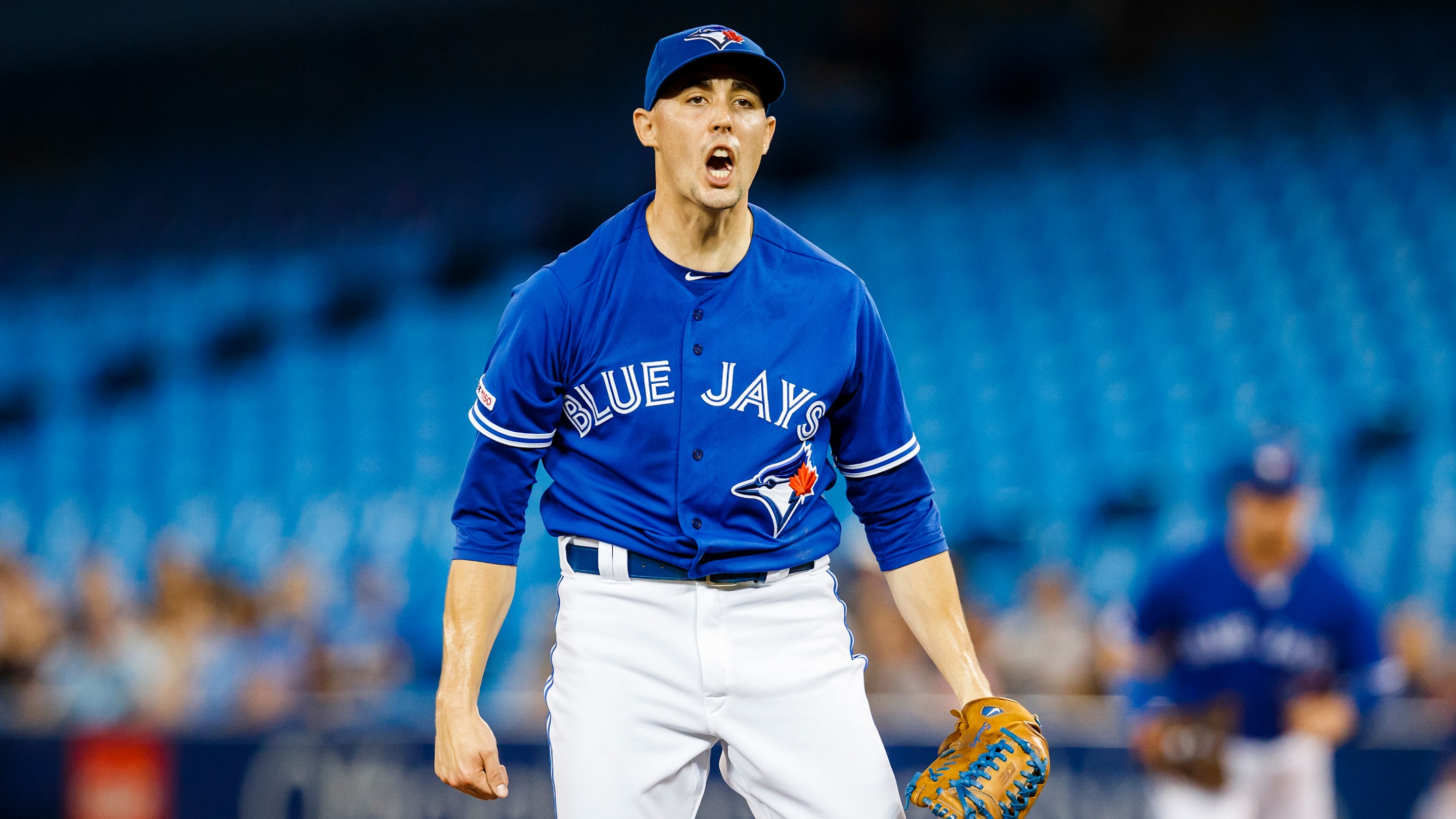 The ones left, who are shielded by an awning are cheering the grounds crew as they struggled with the tarp in the rain and wind.