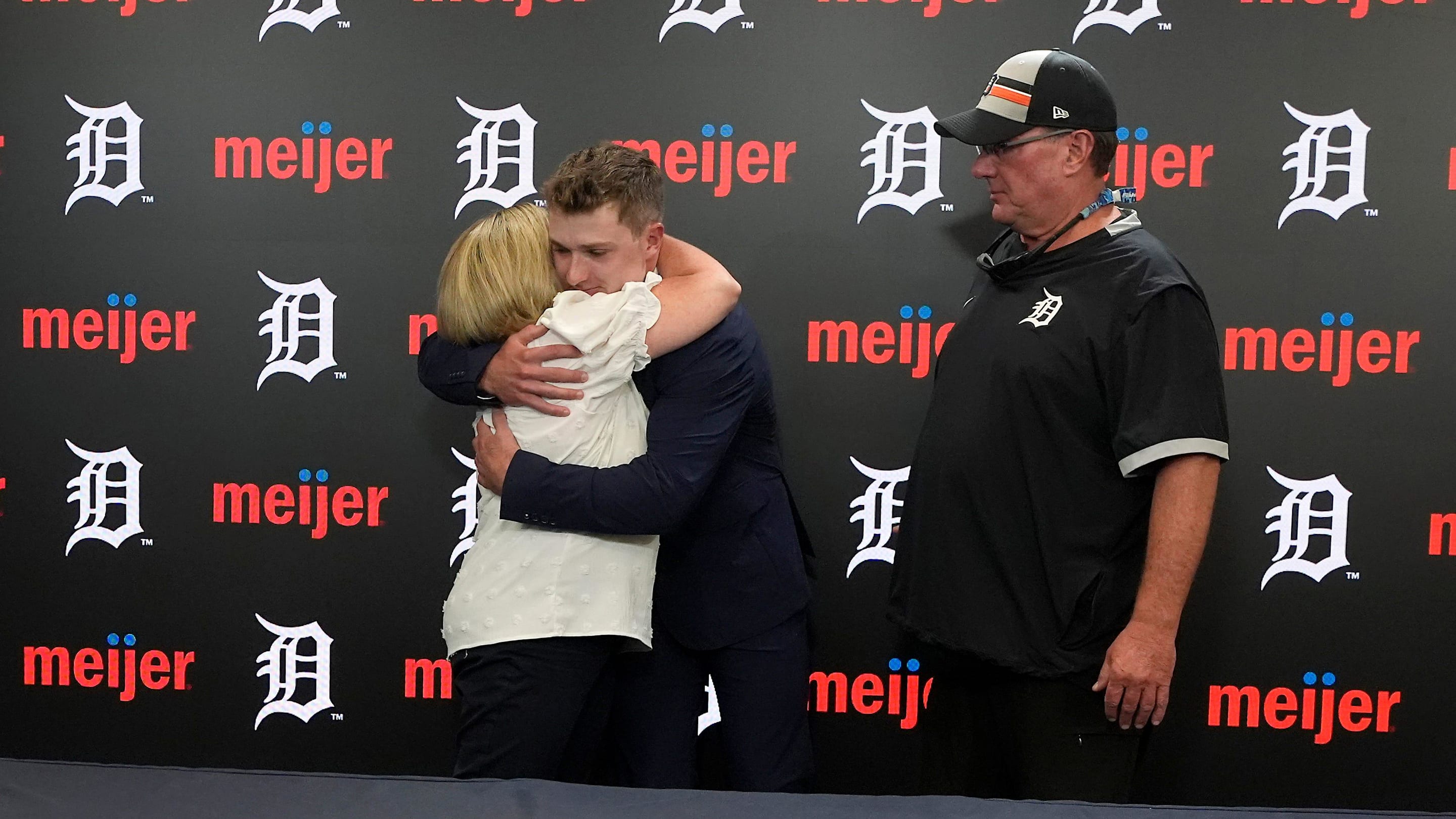 The ones left, who are shielded by an awning are cheering the grounds crew as they struggled with the tarp in the rain and wind.